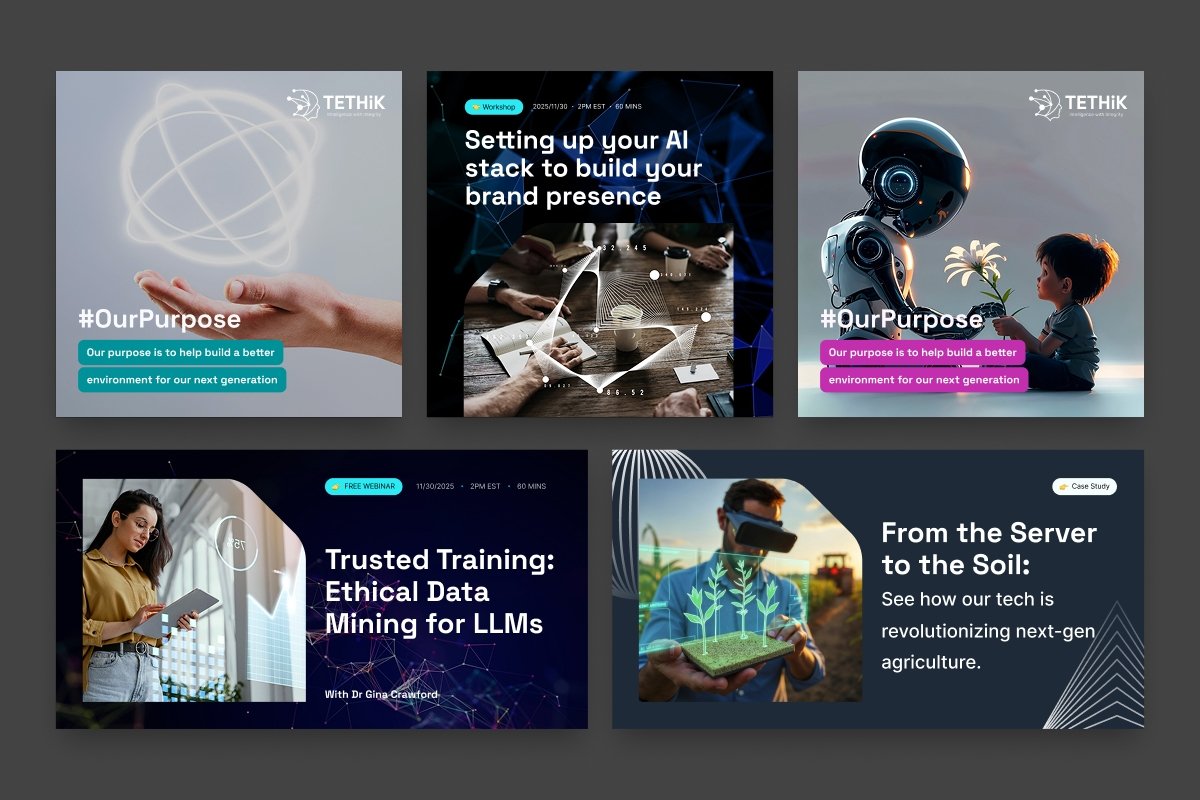 The new identity gives TETHiK a credible and distinctive presence in the AI space. Their brand now communicates innovation with integrity—showing enterprises they can trust TETHiK as a partner while still appealing to forward-thinking startups. With clear guidelines and adaptable assets in place, the team can consistently present themselves across digital, print, and events. The result is a brand that looks as confident and future-ready as the solutions they create.